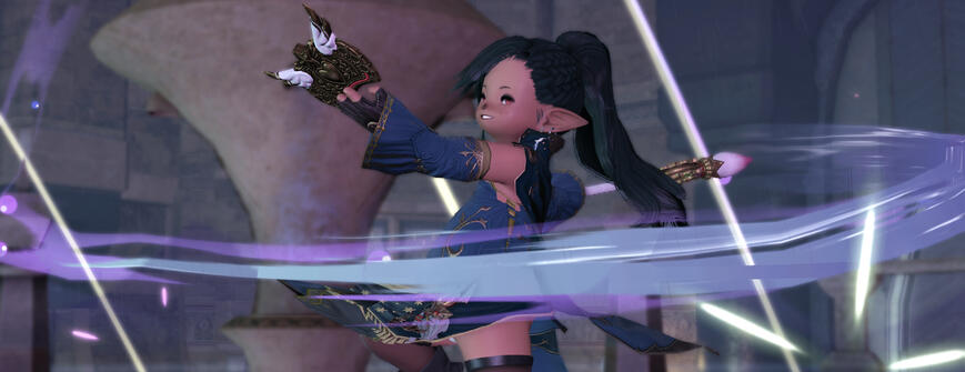 A lalafellin woman performs in the plaza for a crowd of children. Swirling streaks of colored paints come to life, creating creatures and tableaus to accent her dance and her story telling. Some know her for these shows. Others for her work collecting folk lore and myths.None know the crimes she committed as a teenager under the moniker Sister Grimalkin. Burglaries, inciting riots, possibly a handful of murders. All to bring the common folk of Ul'dah a better future.The Brass Blades assumed her band of urchins dead to the last, but she survived. What will she do with that second chance?
